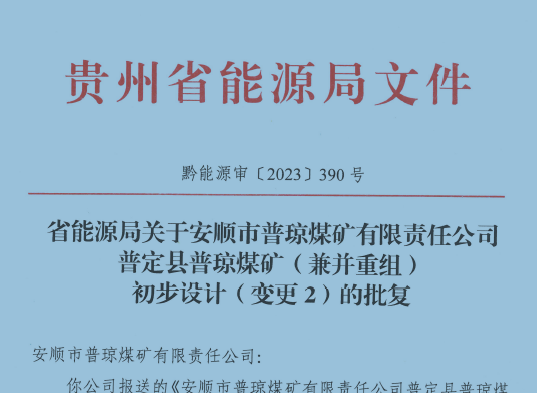 普定縣普瓊煤礦(兼并重組)初步設(shè)計(jì)(變更2)