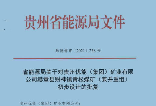 貴州優(yōu)能(集團)礦業(yè)有限公司 赫章縣財神鎮(zhèn)青松煤礦(兼并重組) 初步設(shè)計