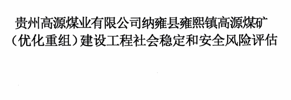 納雍縣雍熙鎮(zhèn)高源煤礦(優(yōu)化重組)建設(shè)工程社會(huì)穩(wěn)定和安全風(fēng)險(xiǎn)評(píng)估報(bào)告書(shū)