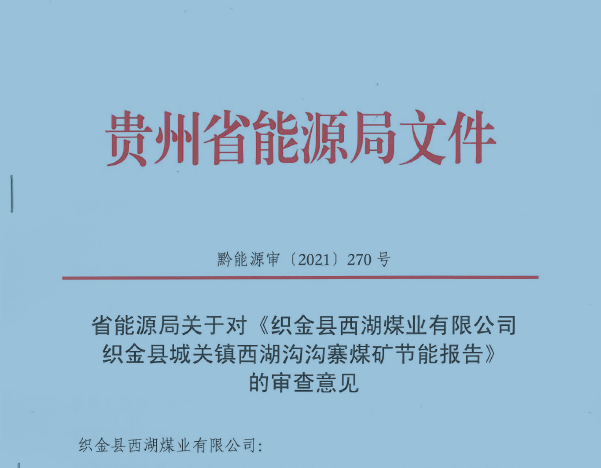 織金縣西湖煤業(yè)有限公司織金縣城關(guān)鎮(zhèn)西湖溝溝寨煤礦(兼并重組)節(jié)能報(bào)告