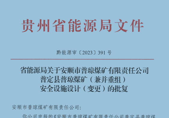 普定縣普瓊煤礦(兼并重組) 安全設(shè)施設(shè)計(jì)(變更)