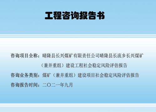 晴隆縣長興煤礦有限責(zé)任公司晴隆縣長流鄉(xiāng)長興煤礦(兼并重組)建設(shè)工程社會穩(wěn)定風(fēng)險評估報告