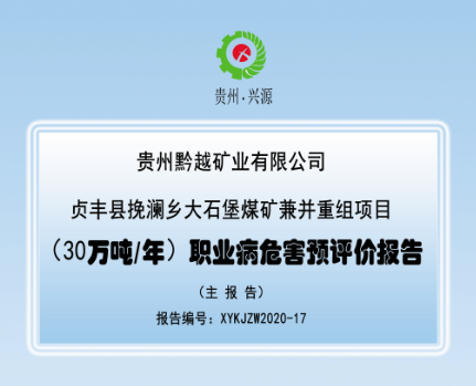 貞豐縣挽瀾鄉(xiāng)大石堡煤礦兼并重組項目 (30萬噸/年)職業(yè)病危害預(yù)評價報告