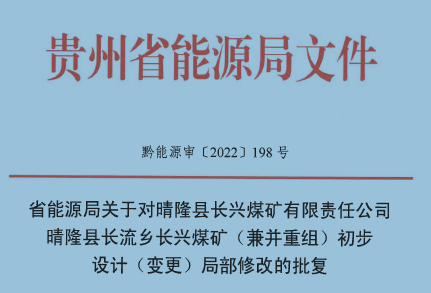 晴隆縣長(zhǎng)流鄉(xiāng)長(zhǎng)興煤礦(兼并重組) 初步設(shè)計(jì)(變更)局部修改