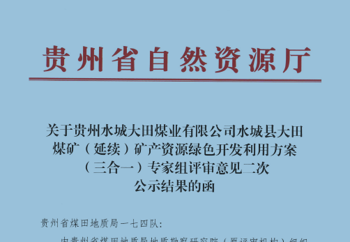水城縣大田煤礦(延續(xù))礦產(chǎn)資源綠色開發(fā)利用方案(三合一)