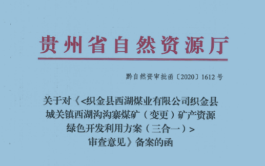 織金縣城關鎮(zhèn)西湖溝溝寨煤礦礦產資源綠色開發(fā)利用方案(三合一)