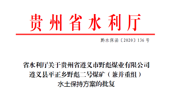貴州省遵義市野彪煤業(yè)有限公司遵義縣平正鄉(xiāng)野彪二號煤礦 (兼并重組)