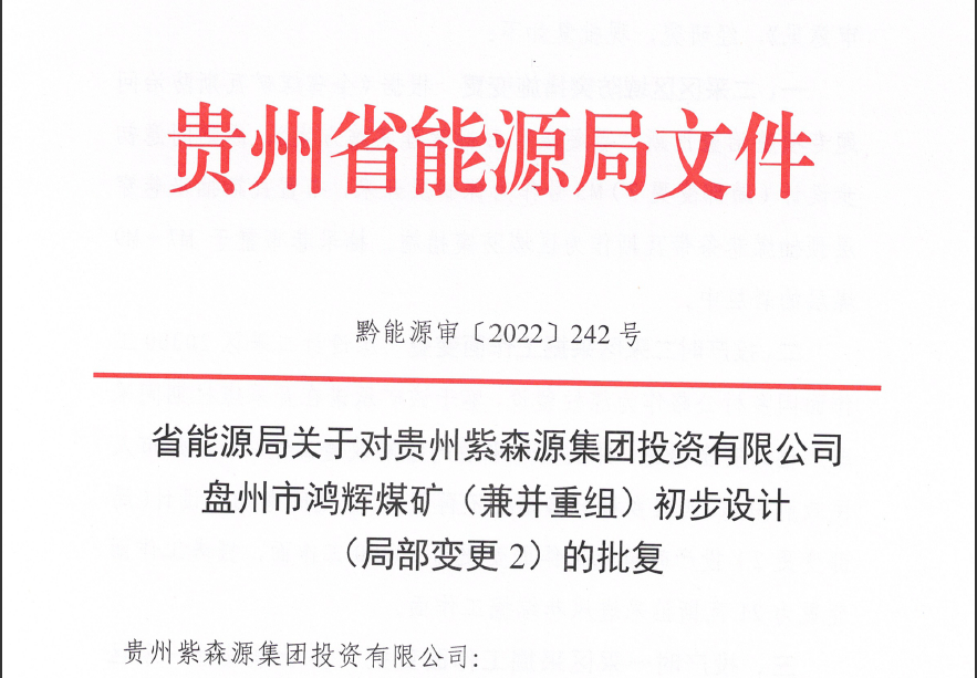 盤(pán)州市鴻輝煤礦 初步設(shè)計(jì)(局部變更2)