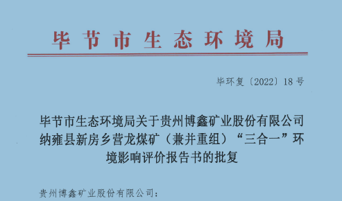 貴州博鑫礦業(yè)股份有限公司納雍縣新房鄉(xiāng)營龍煤礦(兼并重組)“三合一”環(huán)境影響報(bào)告書
