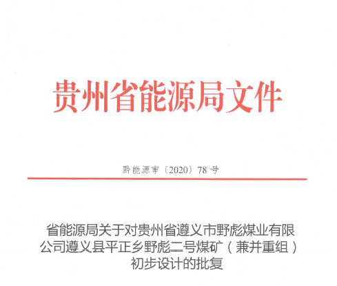 遵義縣平正鄉(xiāng)野彪二號(hào)煤礦(兼并重組)初步設(shè)計(jì)