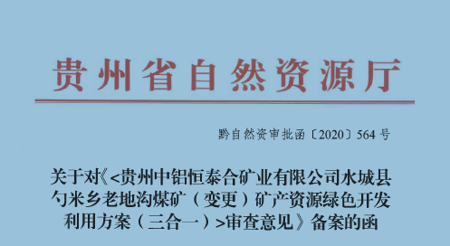 水城縣勺米鄉(xiāng)老地溝煤礦(變更) 礦產(chǎn)資源綠色開發(fā)利用方案 (三合一)