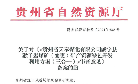貴州省天泰煤化有限公司威寧縣猴子巖煤礦三合一