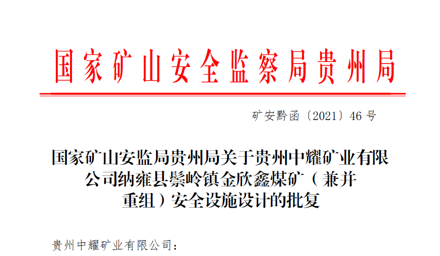 納雍縣鬃嶺鎮(zhèn)金欣鑫煤礦(兼并重組)安全設施設計