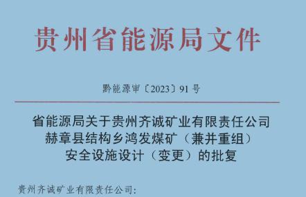 貴州齊誠礦業(yè)有限責任公司 赫章縣結構鄉(xiāng)鴻發(fā)煤礦(兼并重組)安全設施設計(變更)