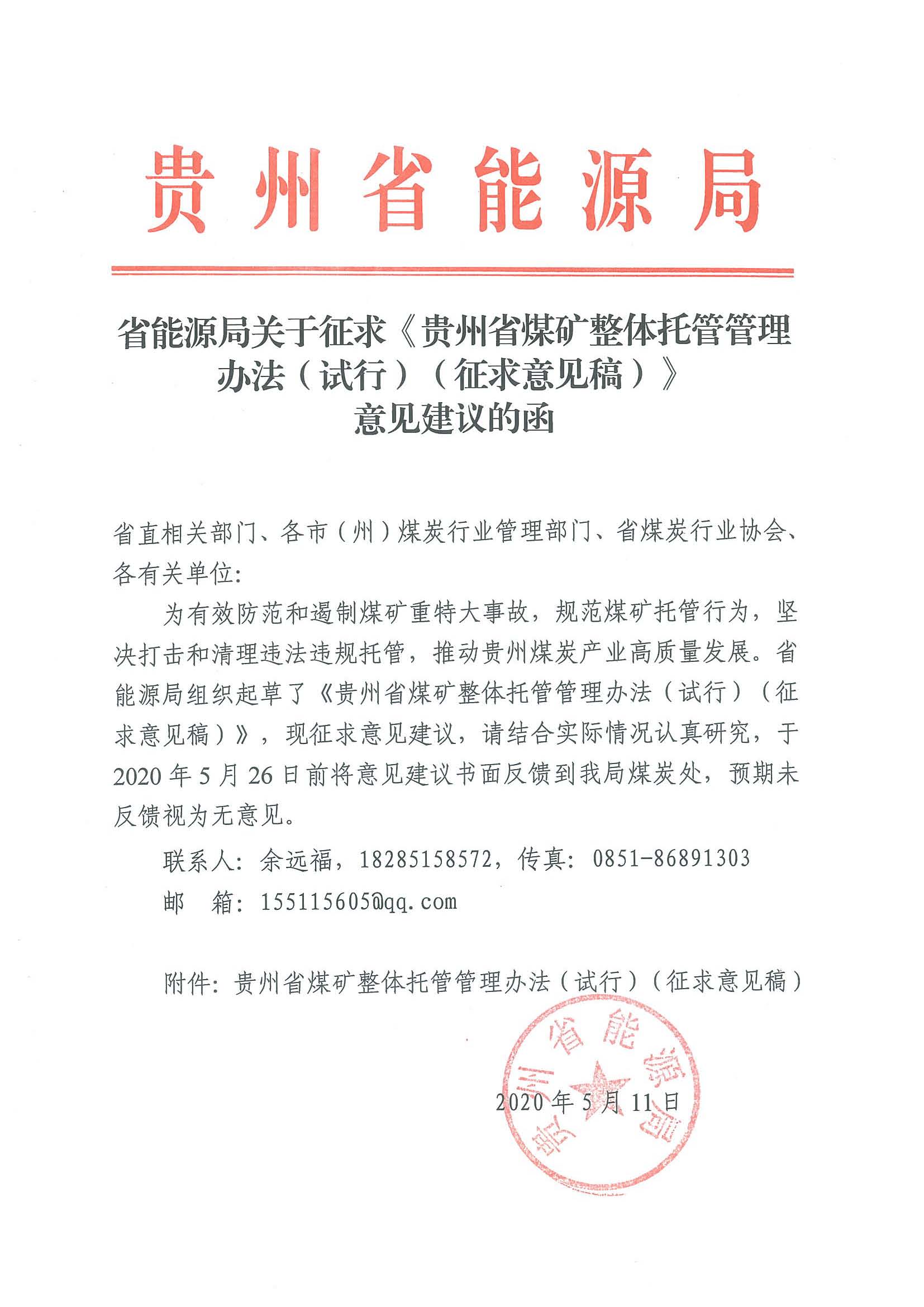 省能源局關(guān)于征求《貴州省煤礦整體托管管理辦法(試行)(征求意見稿)》意見建議的函(1)