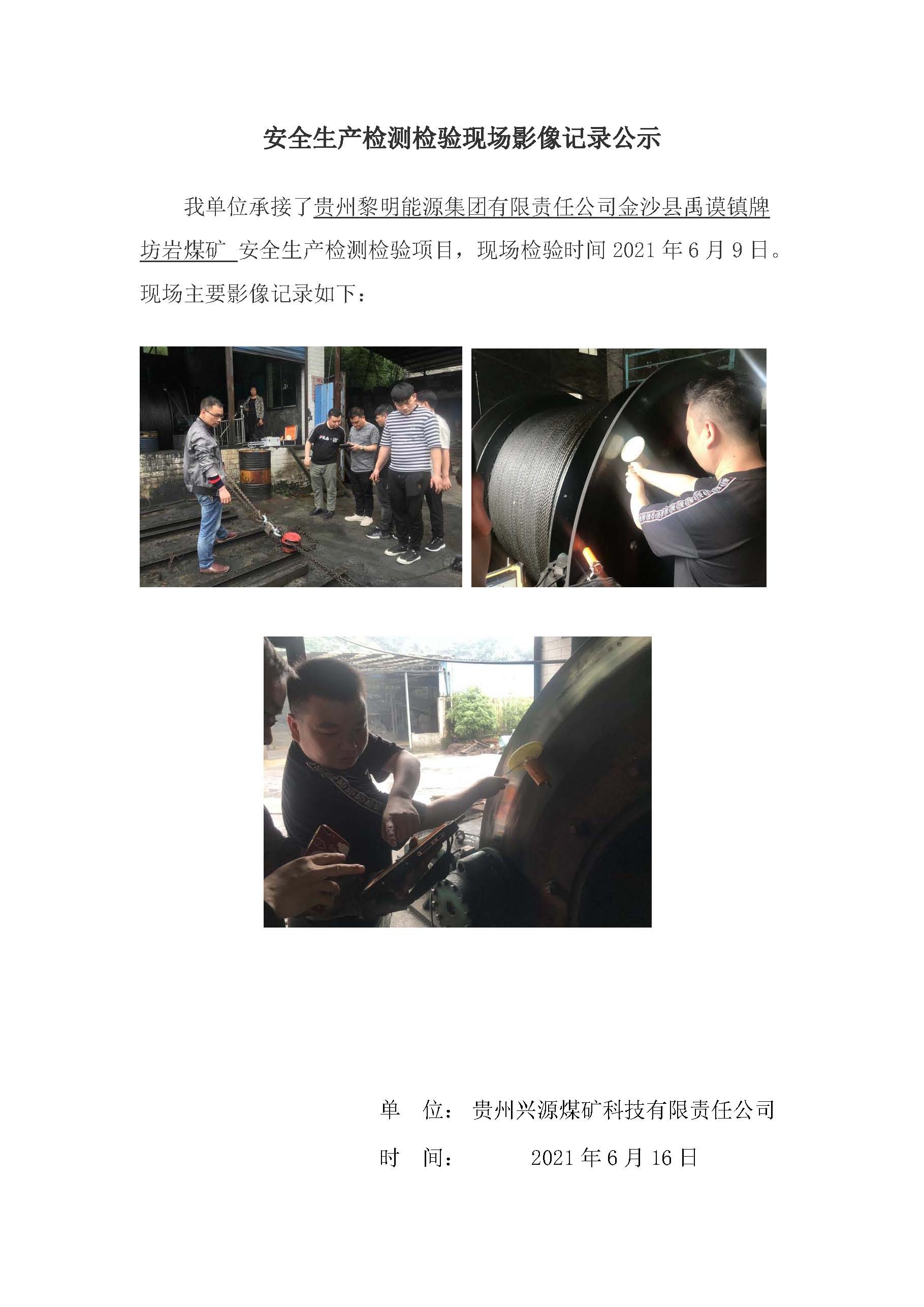 安全生產(chǎn)檢測檢驗現(xiàn)場影像記錄公示【貴州黎明能源集團有限責(zé)任公司金沙縣禹謨鎮(zhèn)牌坊巖煤礦】