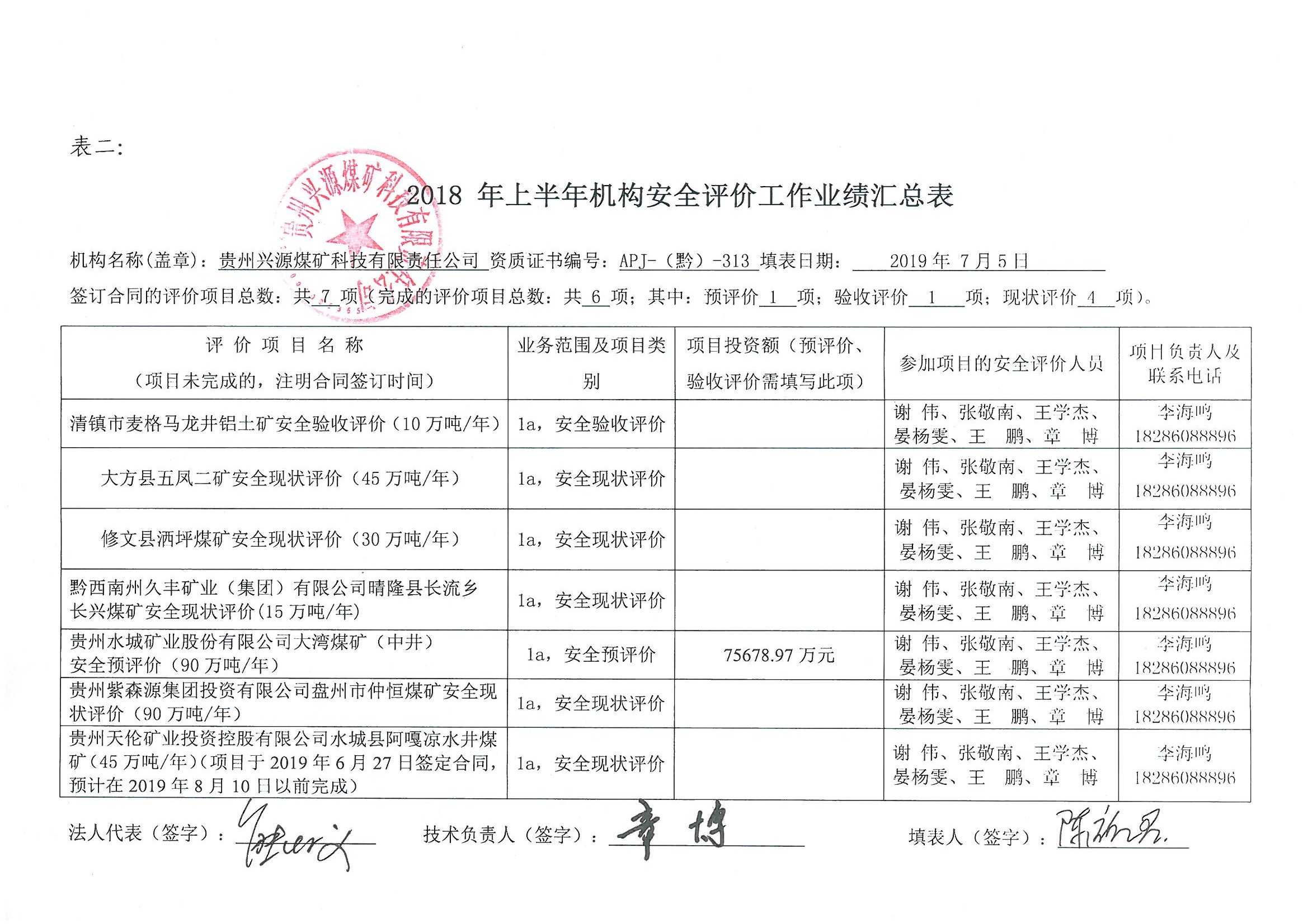 2018年上半年機構(gòu)安全評價工作業(yè)績匯總表