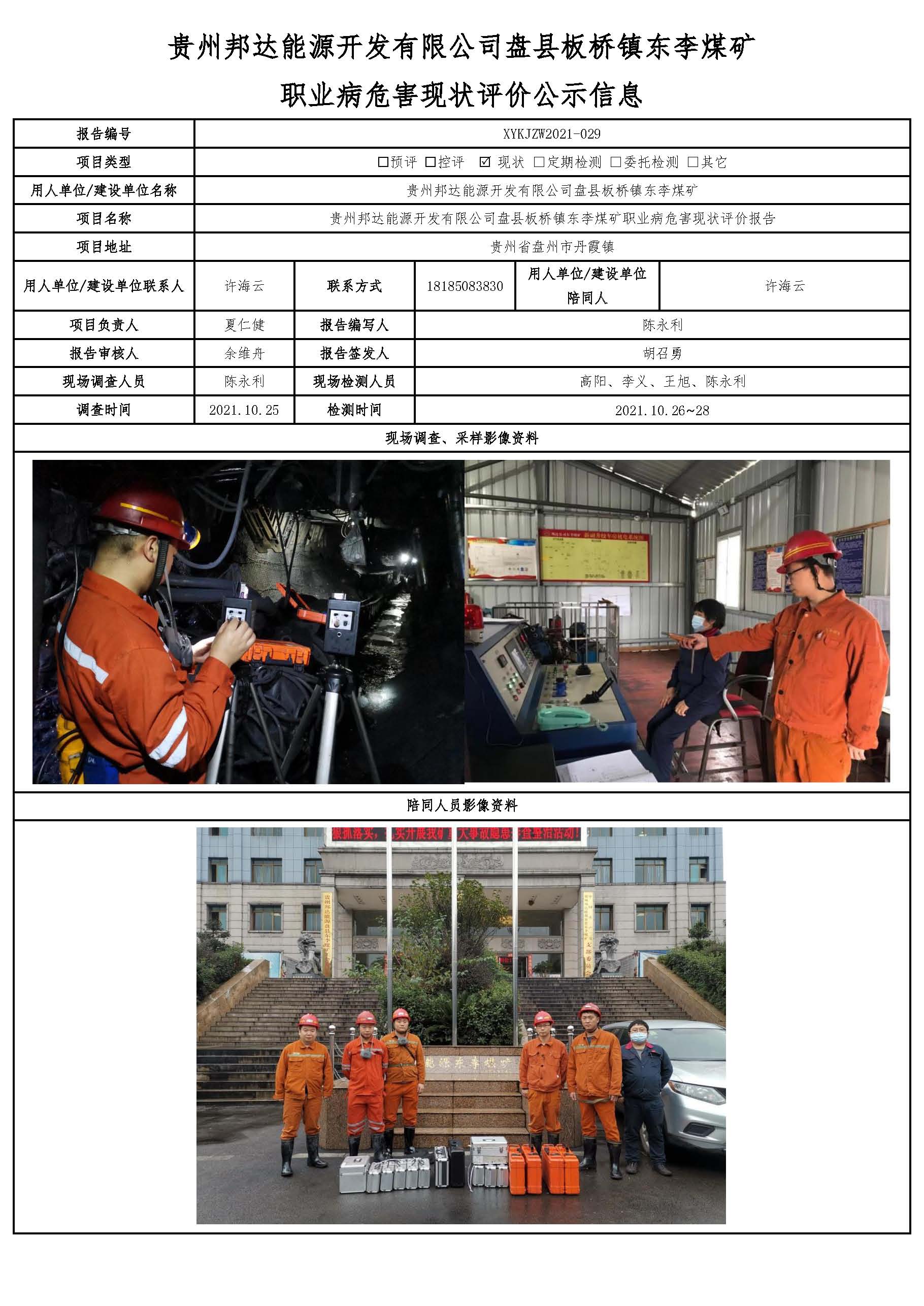 貴州邦達(dá)能源開(kāi)發(fā)有限公司盤(pán)縣板橋鎮(zhèn)東李煤礦 職業(yè)病危害現(xiàn)狀評(píng)價(jià)公示信息