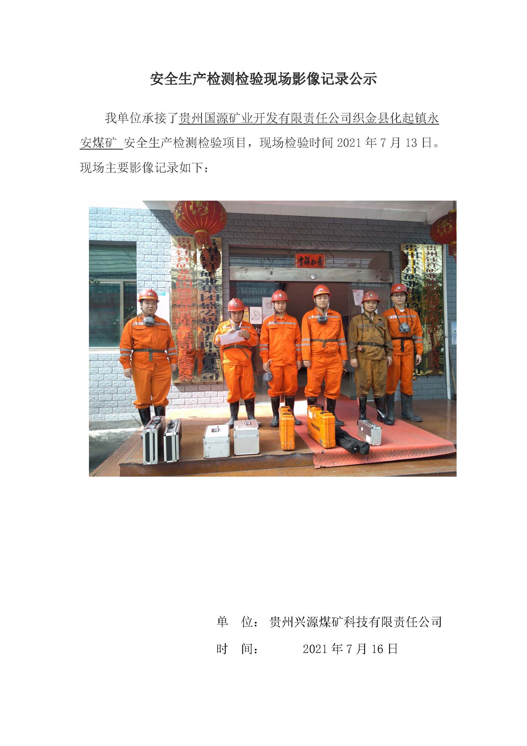 安全生產(chǎn)檢測(cè)檢驗(yàn)現(xiàn)場(chǎng)影像記錄公示【貴州鈺祥礦業(yè)集團(tuán)投資有限公司金沙縣沙土鎮(zhèn)盛安煤礦】