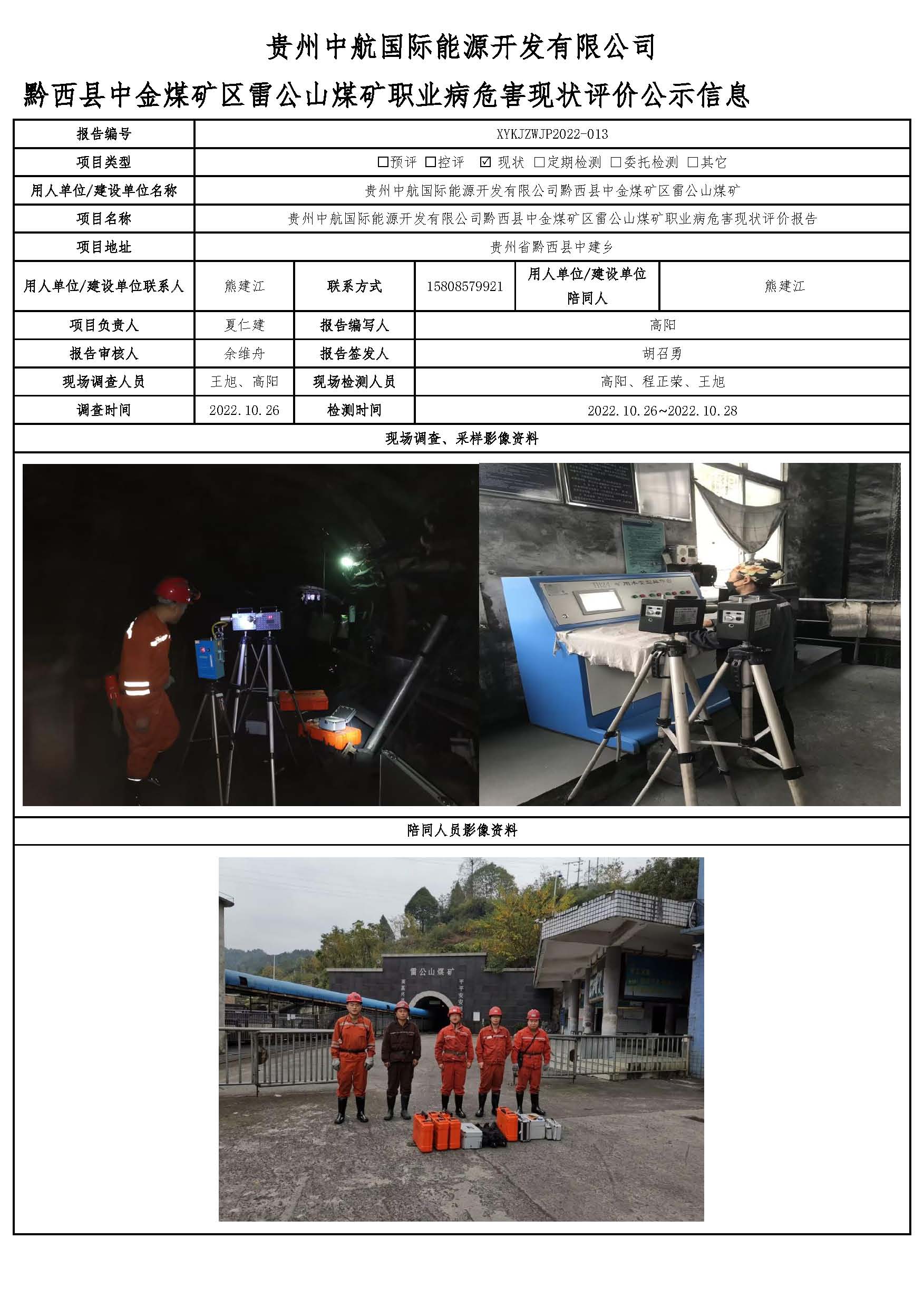 貴州中航國際能源開發(fā)有限公司 黔西縣中金煤礦區(qū)雷公山煤礦職業(yè)病危害現(xiàn)狀評價公示信息