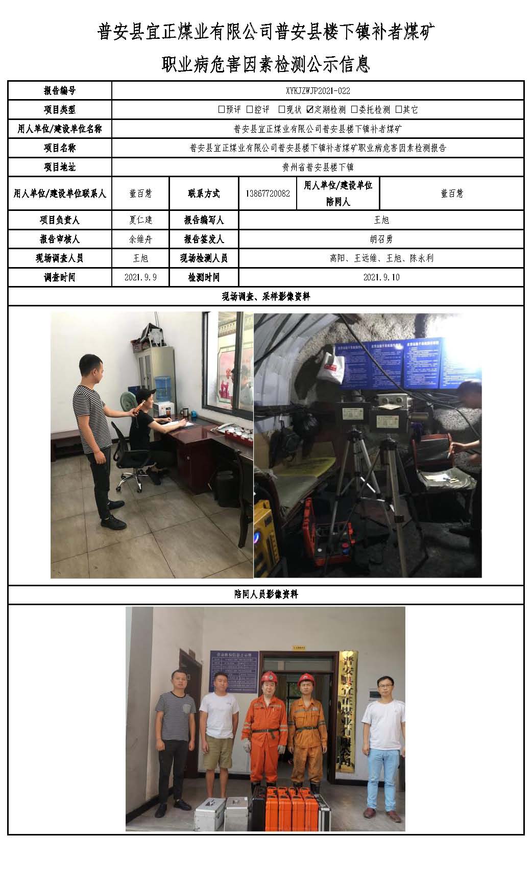 普安縣宜正煤業(yè)有限公司普安縣樓下鎮(zhèn)補(bǔ)者煤礦 職業(yè)病危害因素檢測(cè)公示信息