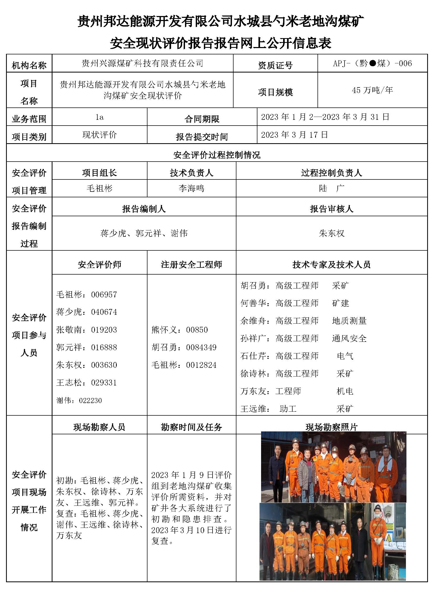 貴州邦達(dá)能源開發(fā)有限公司水城縣勺米老地溝煤礦安全現(xiàn)狀評(píng)價(jià)報(bào)告報(bào)告網(wǎng)上公開信息表