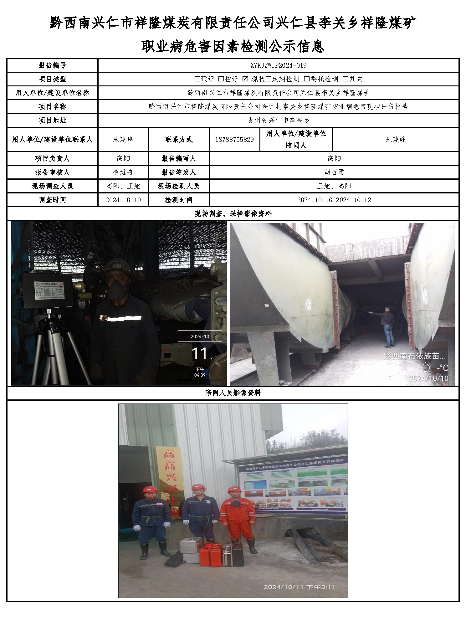 黔西南興仁市祥隆煤炭有限責任公司興仁縣李關鄉(xiāng)祥隆煤礦 職業(yè)病危害因素檢測公示信息