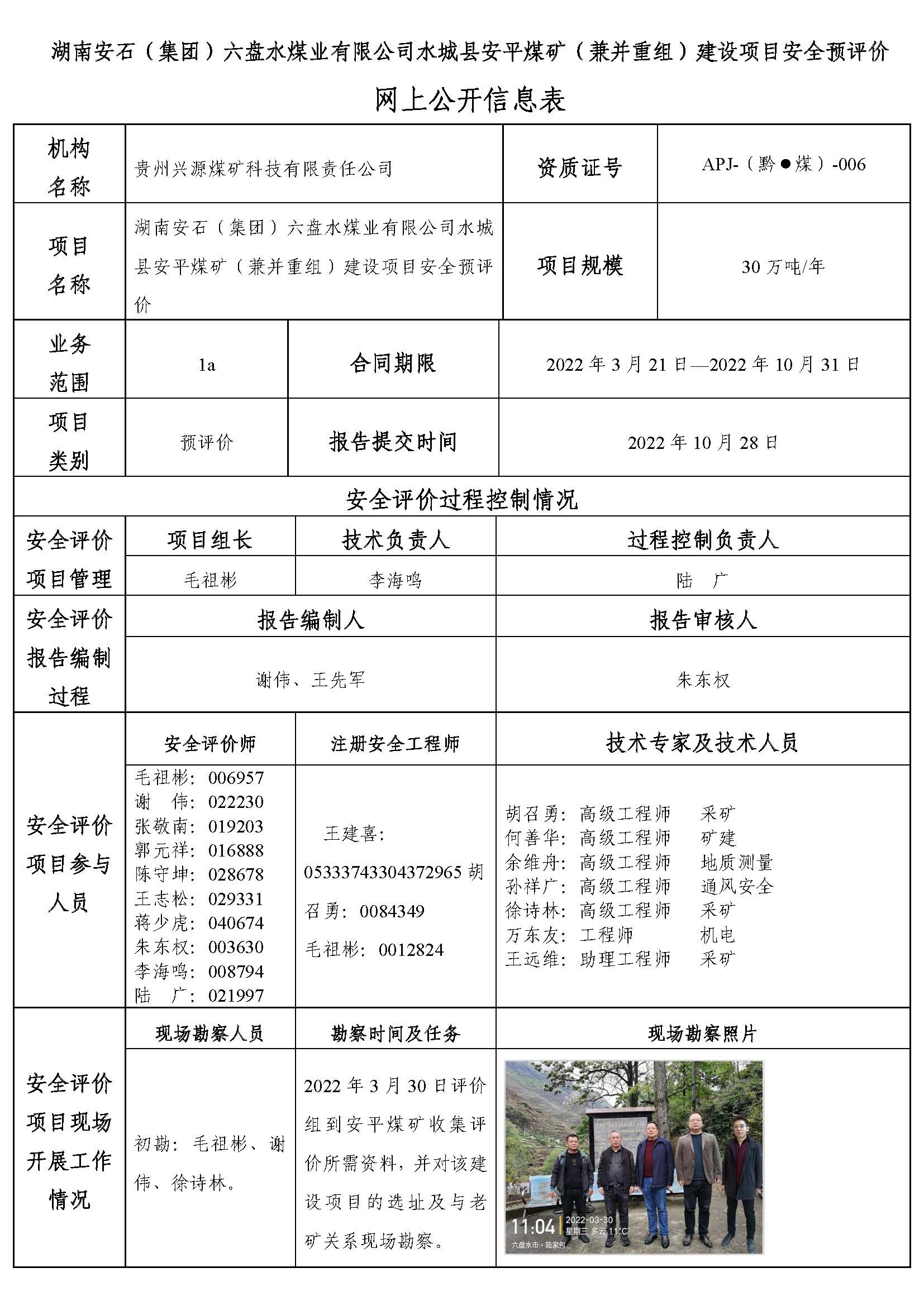 貴州棗礦能源有限責(zé)任公司綠塘煤礦(兼并重組)安全驗收評價網(wǎng)上公開信息表