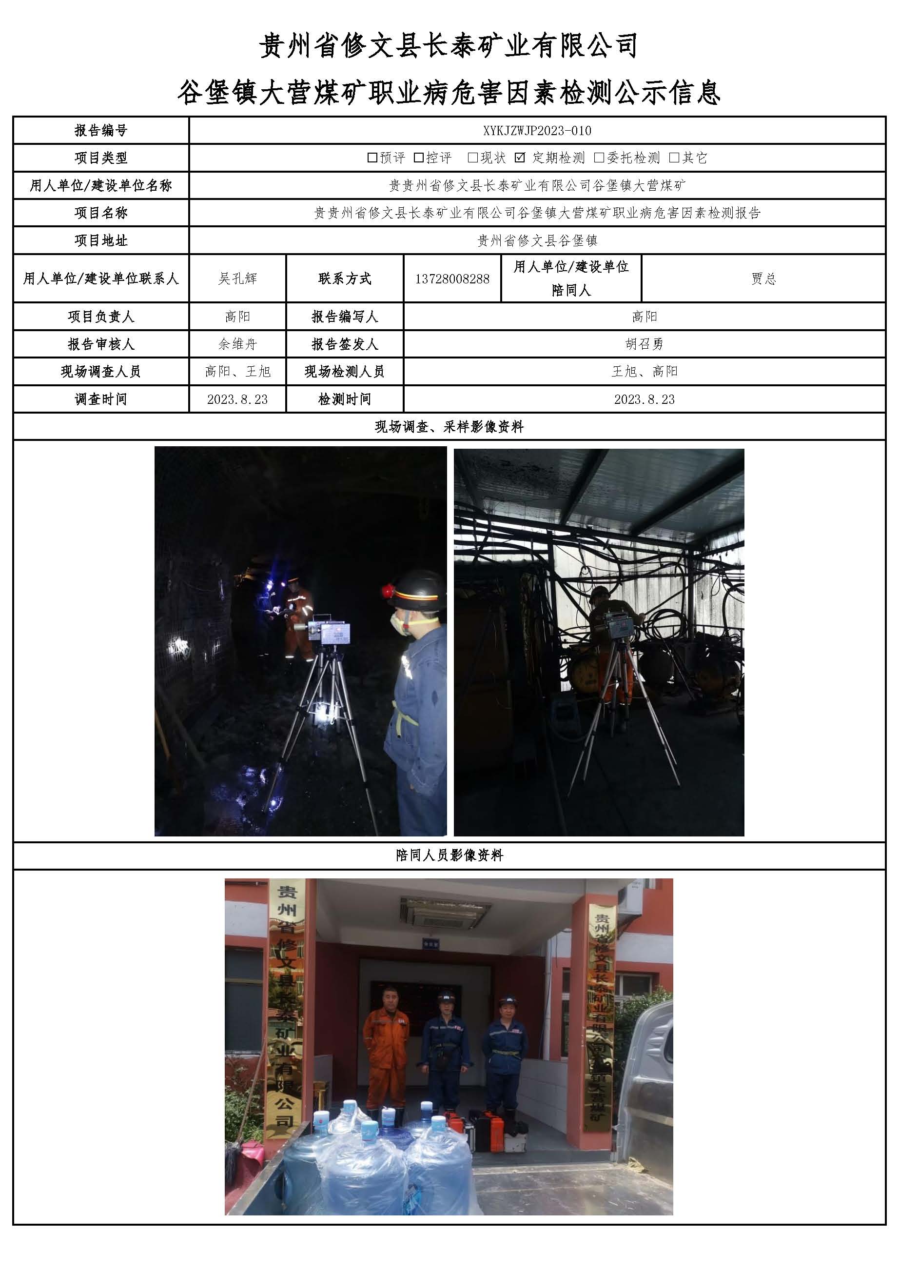 貴州省修文縣長(zhǎng)泰礦業(yè)有限公司谷堡鎮(zhèn)大營(yíng)煤礦職業(yè)病危害因素檢測(cè)公示信息