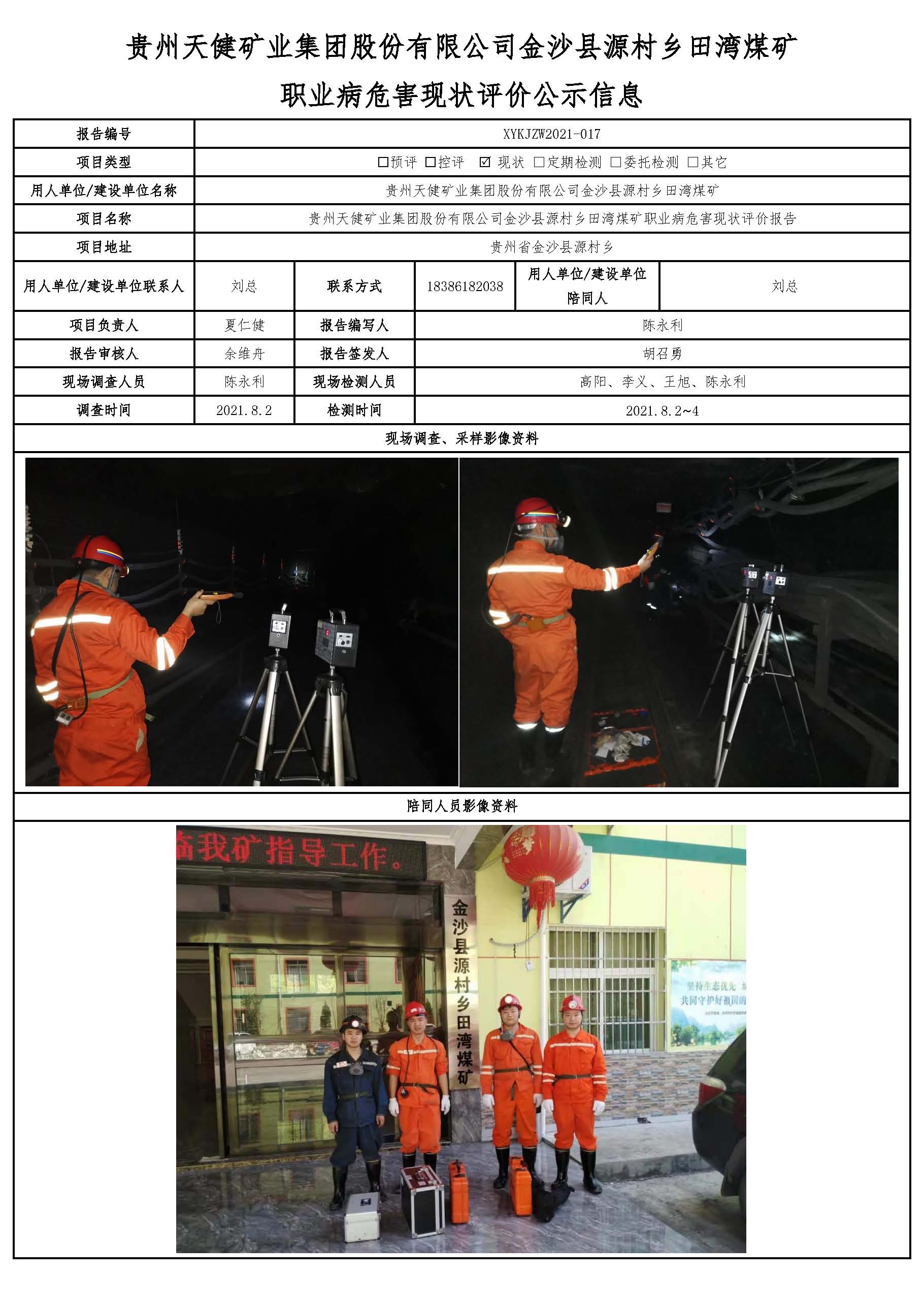 貴州天健礦業(yè)集團股份有限公司金沙縣源村鄉(xiāng)田灣煤礦 職業(yè)病危害現(xiàn)狀評價公示信息