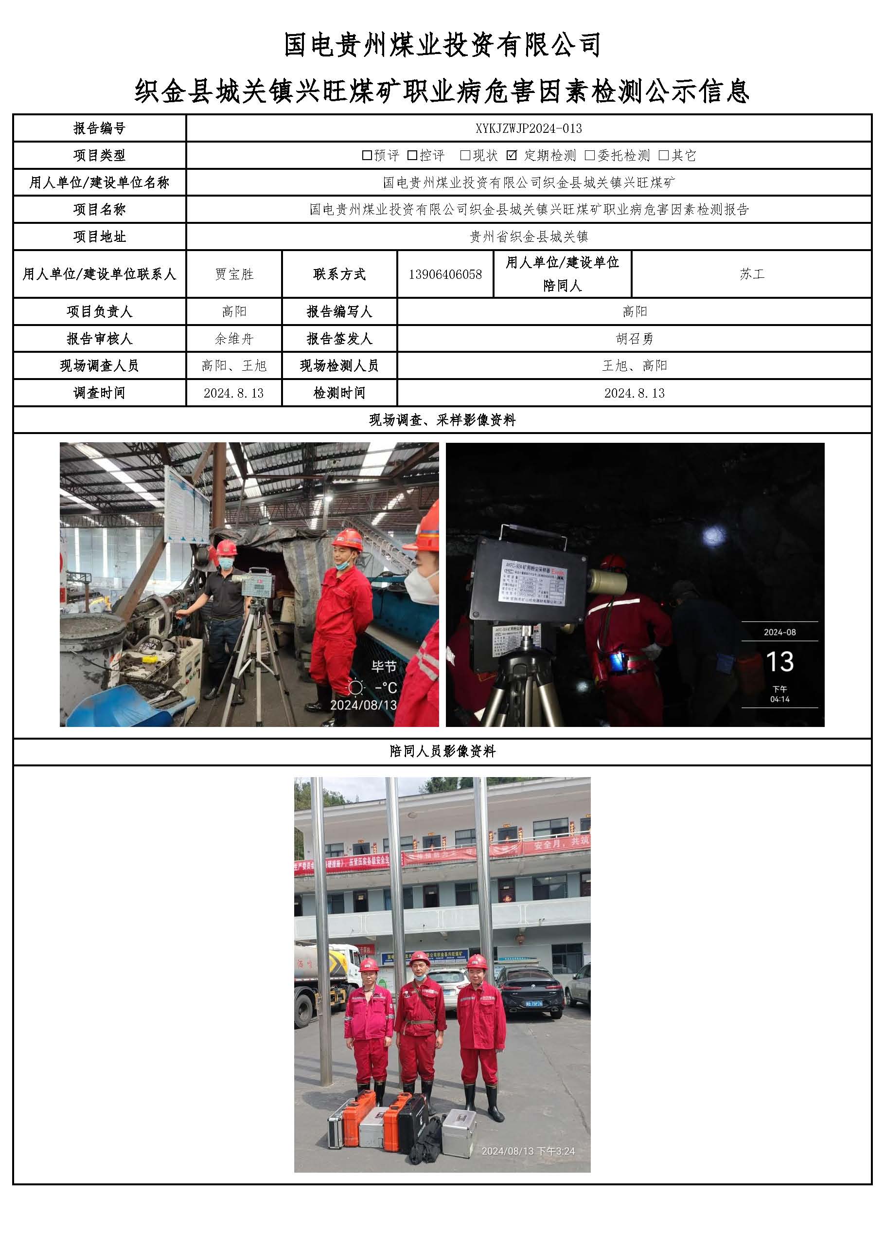 國(guó)電貴州煤業(yè)投資有限公司織金縣城關(guān)鎮(zhèn)興旺煤礦職業(yè)病危害因素檢測(cè)公示信息