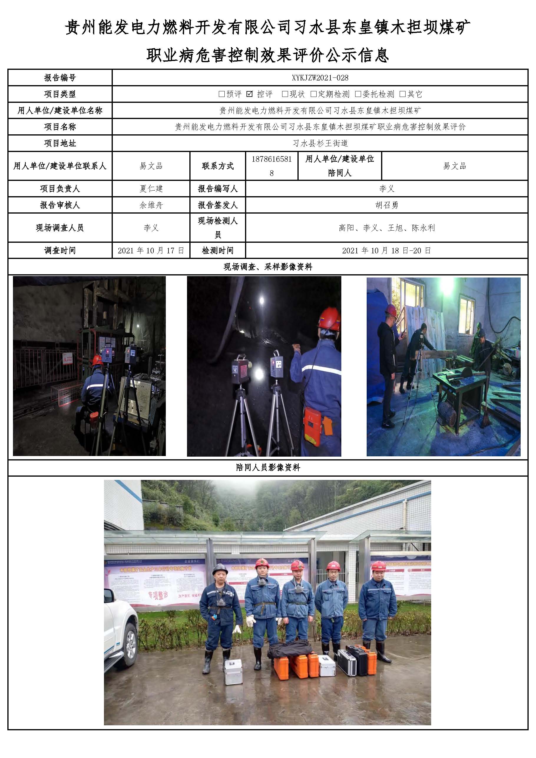貴州能發(fā)電力燃料開發(fā)有限公司習水縣東皇鎮(zhèn)木擔壩煤礦 職業(yè)病危害控制效果評價公示信息