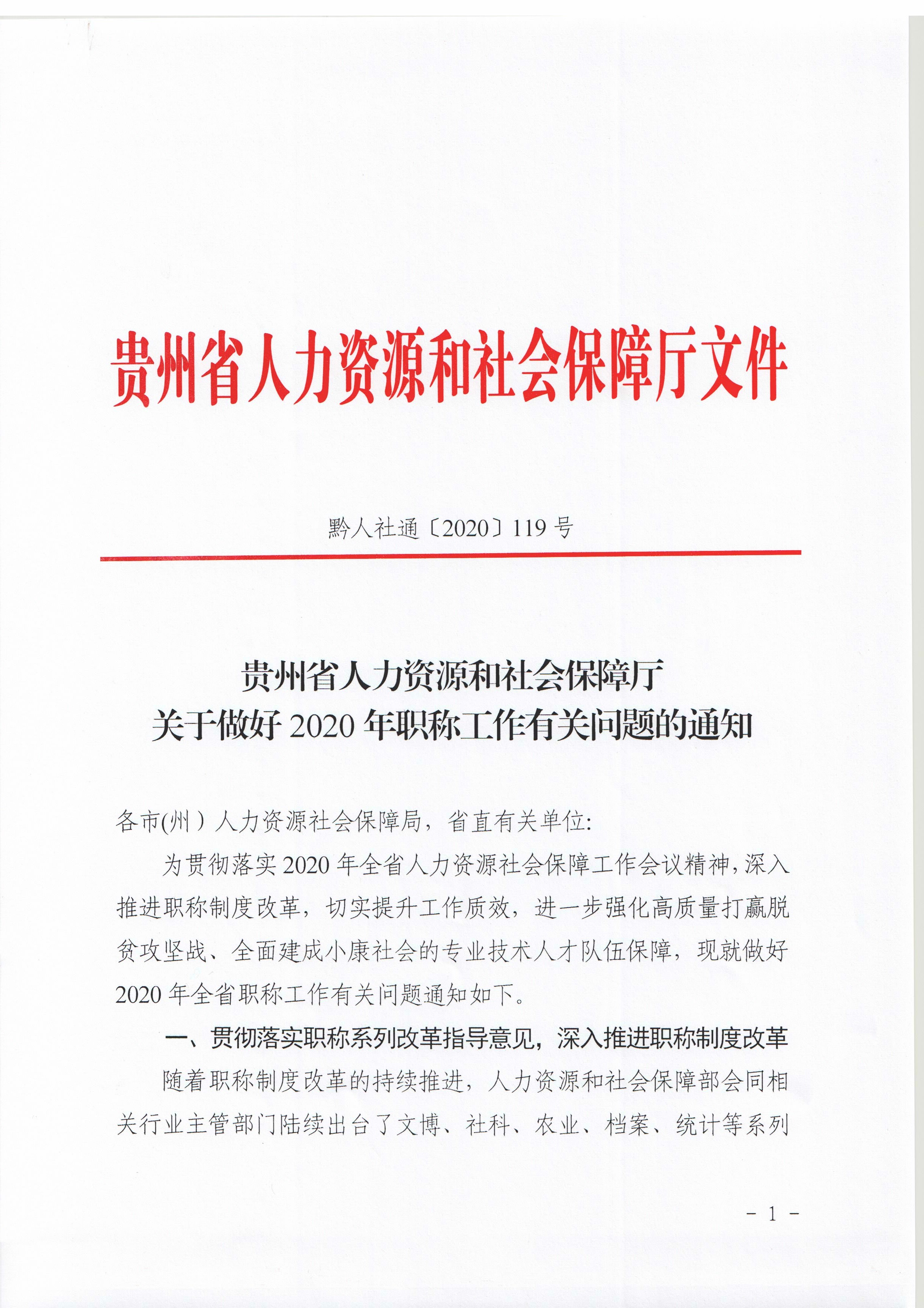 貴州省人力資源和社會保障廳關(guān)于做好2020年職稱工作有關(guān)問題的通知
