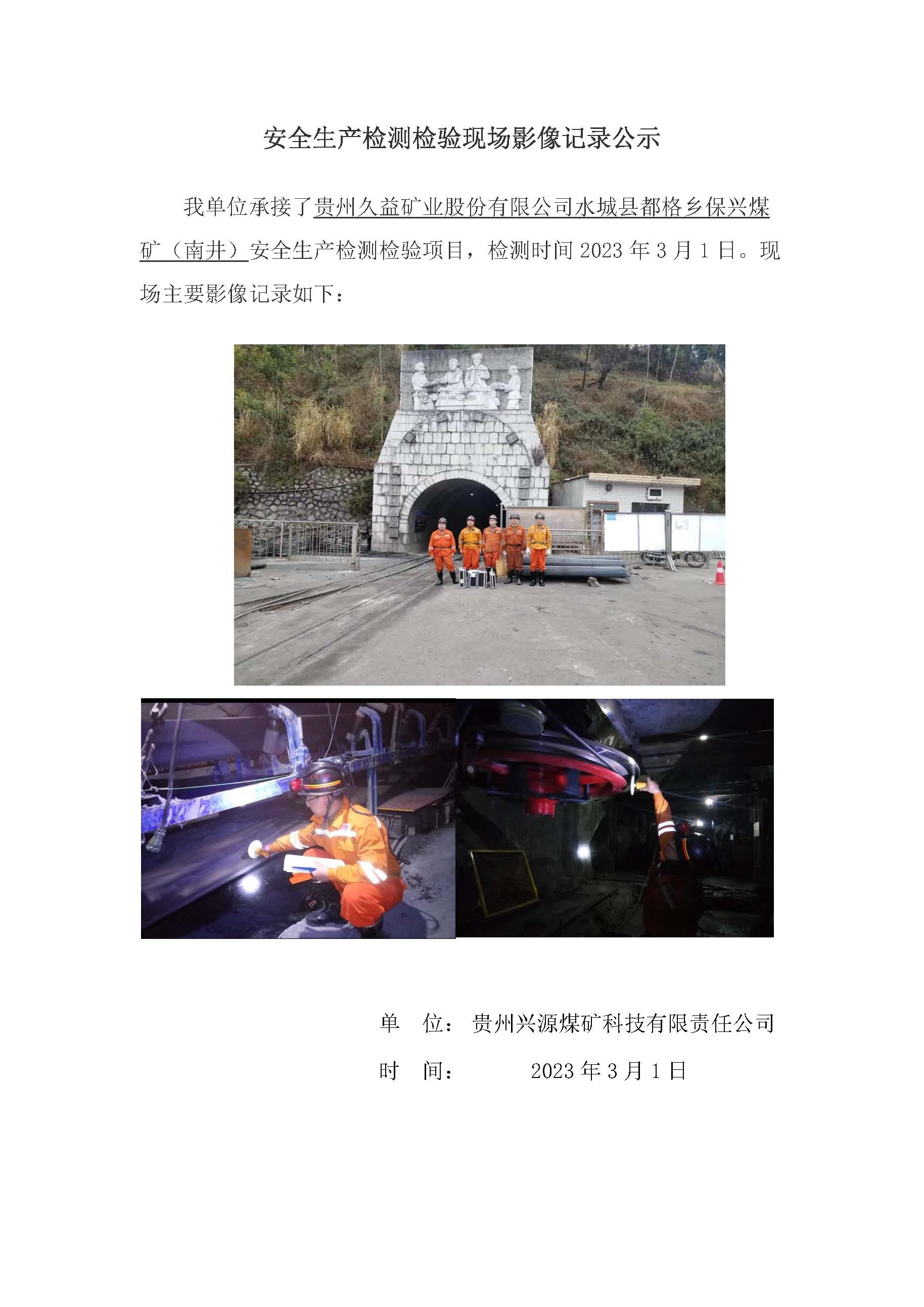 安全生產(chǎn)檢測檢驗現(xiàn)場影像記錄公示【貴州久益礦業(yè)股份有限公司水城縣都格鄉(xiāng)保興煤礦(南井)】