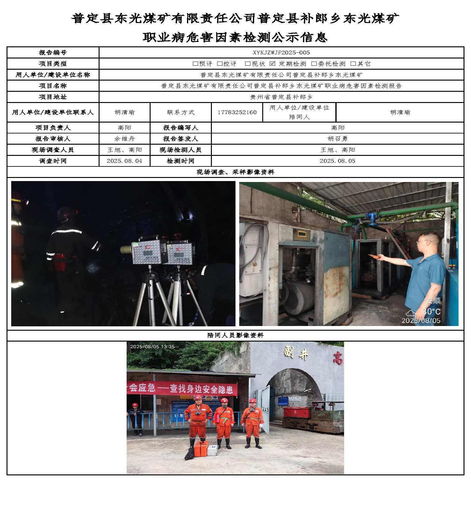 普定縣東光煤礦有限責任公司普定縣補郎鄉(xiāng)東光煤礦職業(yè)病危害因素檢測公示信息