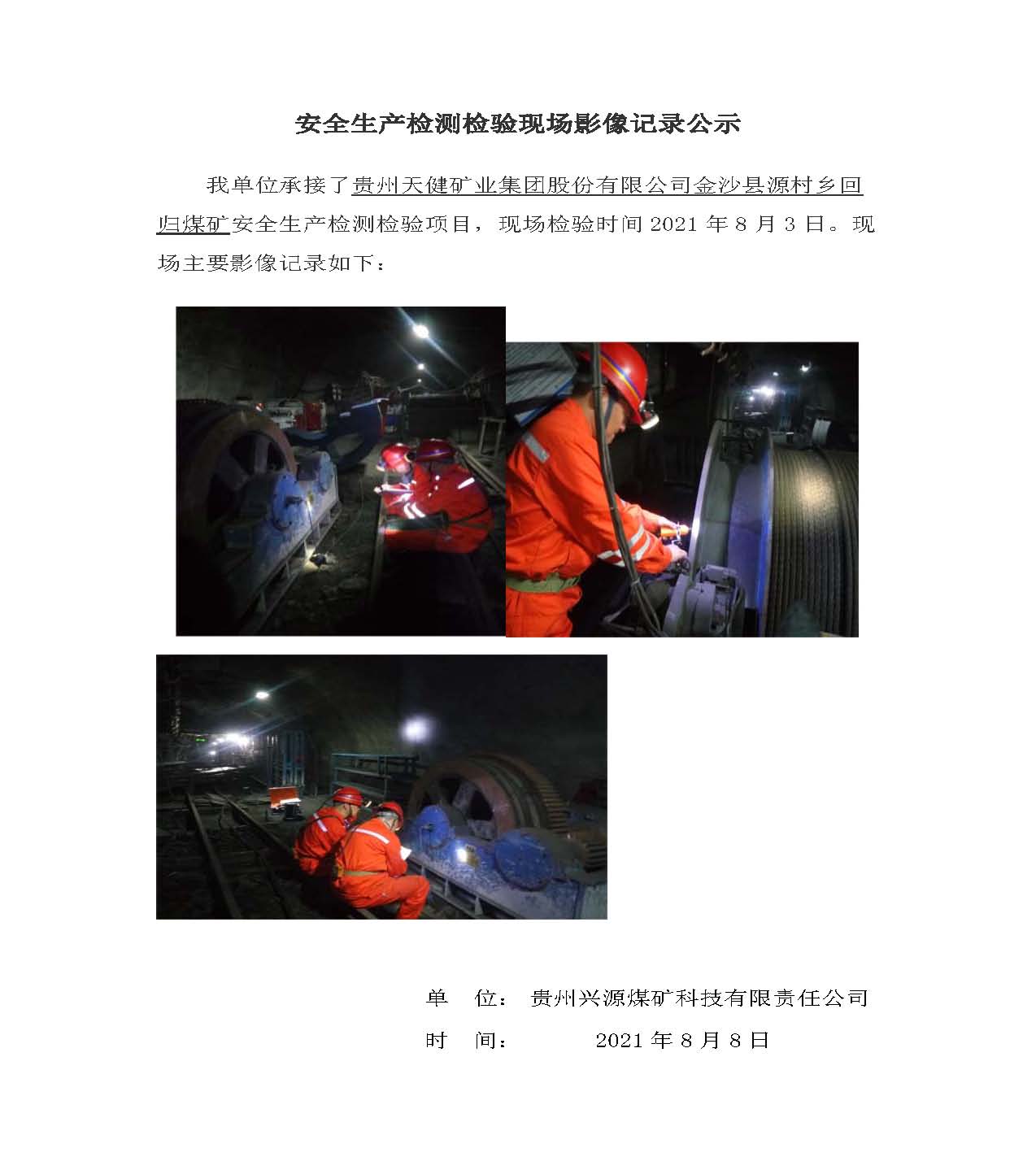 安全生產(chǎn)檢測(cè)檢驗(yàn)現(xiàn)場(chǎng)影像記錄公示【貴州天健礦業(yè)集團(tuán)股份有限公司金沙縣源村鄉(xiāng)回歸煤礦】