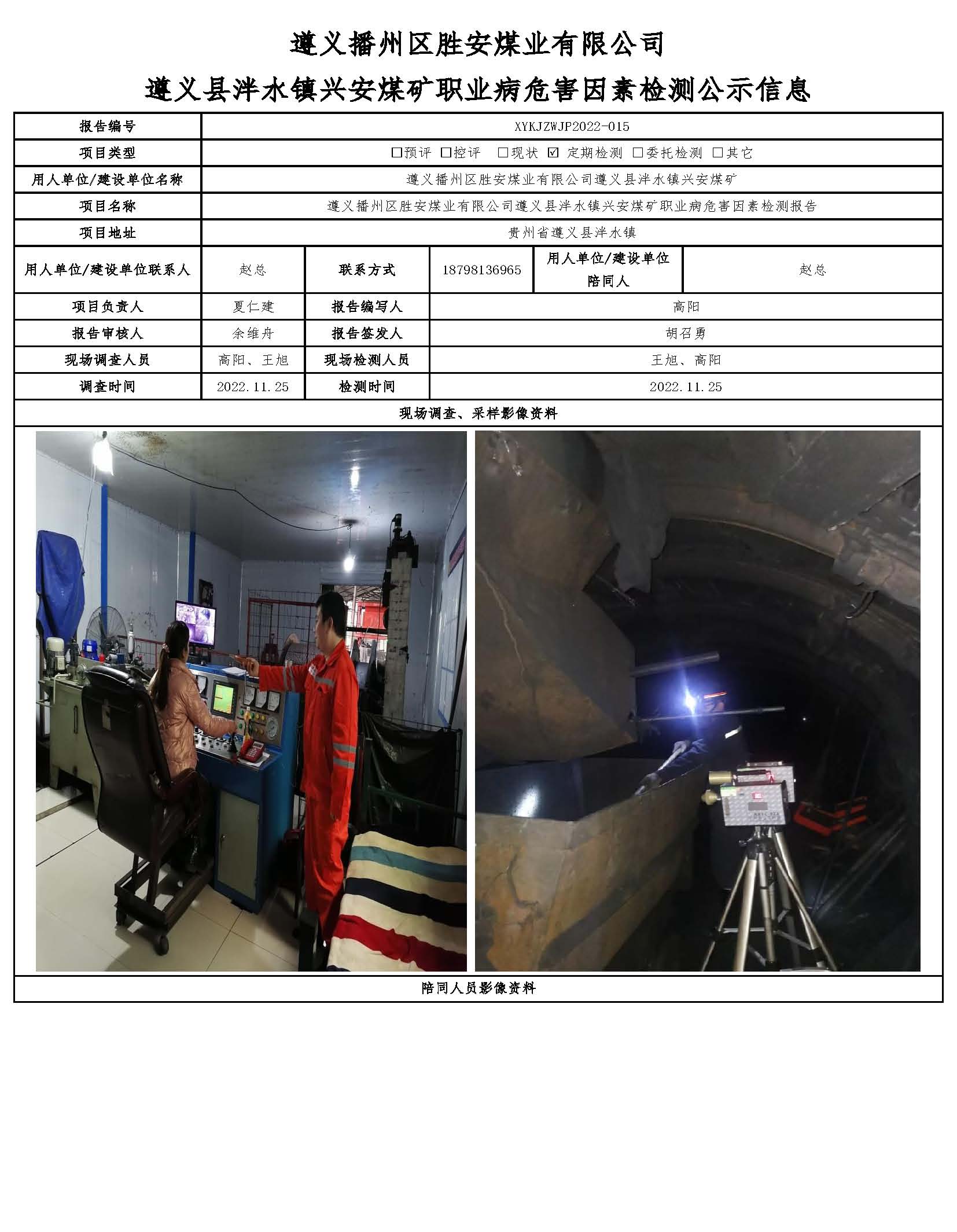 遵義播州區(qū)勝安煤業(yè)有限公司 遵義縣泮水鎮(zhèn)興安煤礦職業(yè)病危害因素檢測公示信息