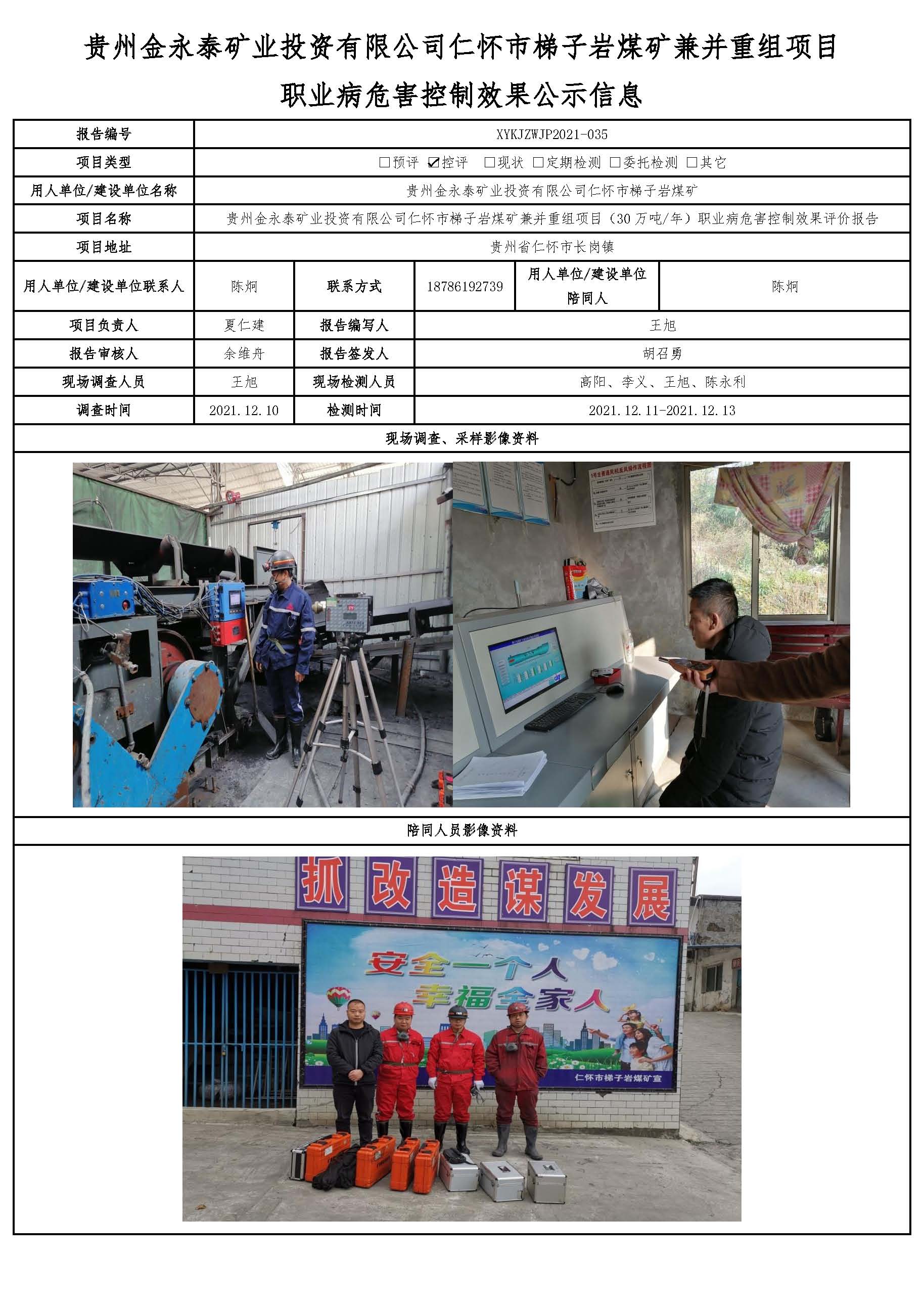 貴州金永泰礦業(yè)投資有限公司仁懷市梯子巖煤礦兼并重組項目 職業(yè)病危害控制效果公示信息