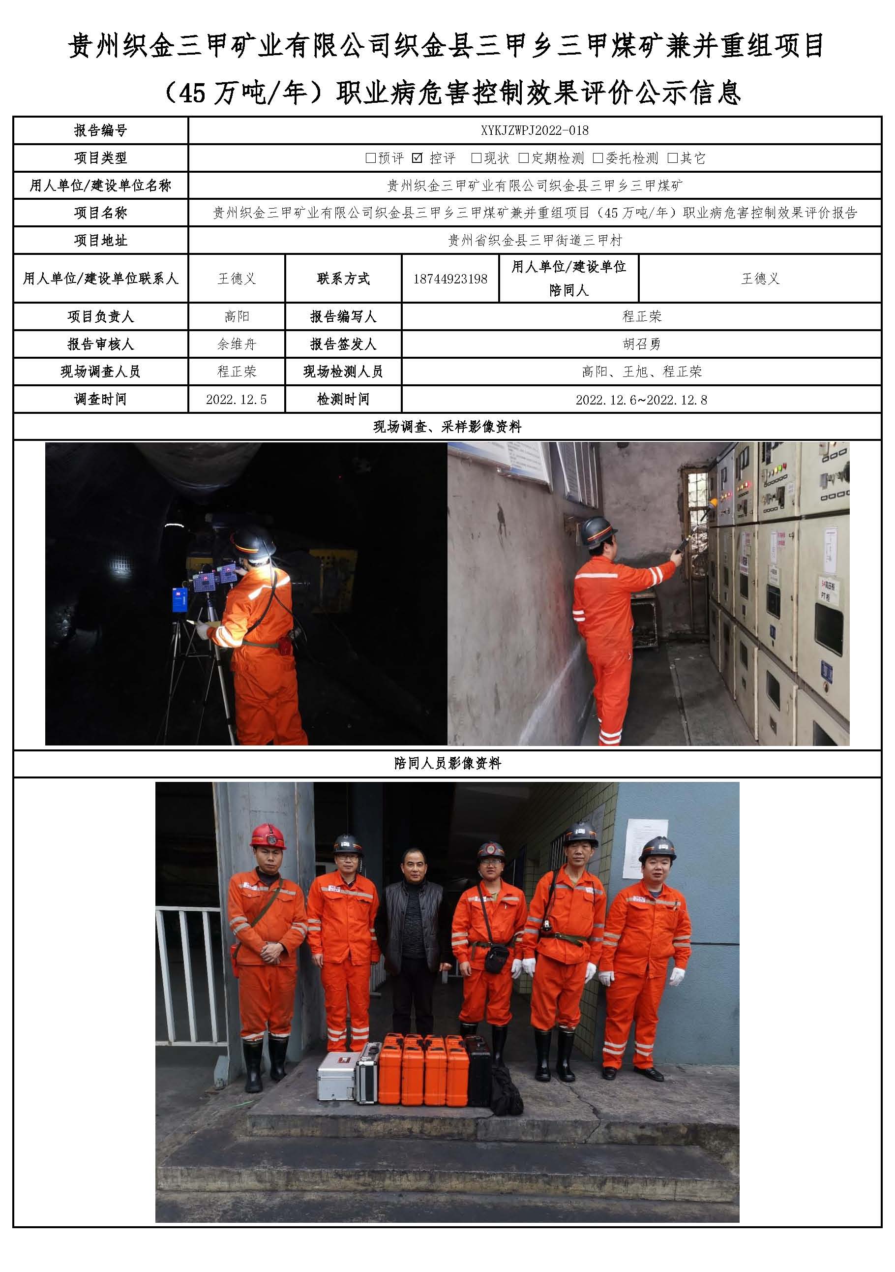貴州織金三甲礦業(yè)有限公司織金縣三甲鄉(xiāng)三甲煤礦兼并重組項目職業(yè)病危害控制效果評價公示信息