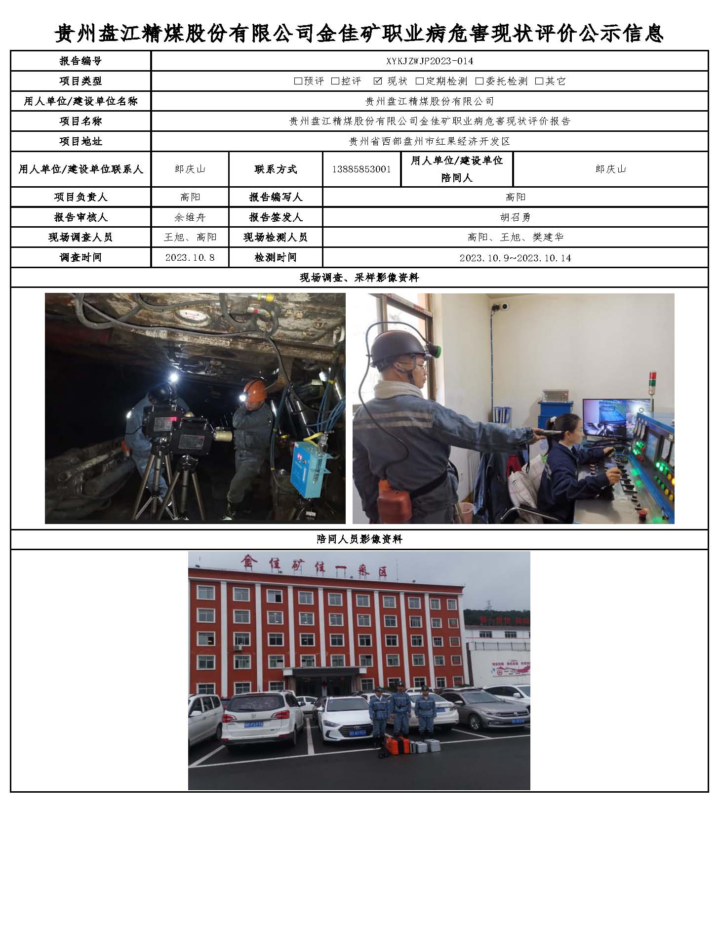 貴州盤江精煤股份有限公司金佳礦職業(yè)病危害現(xiàn)狀評價公示信息