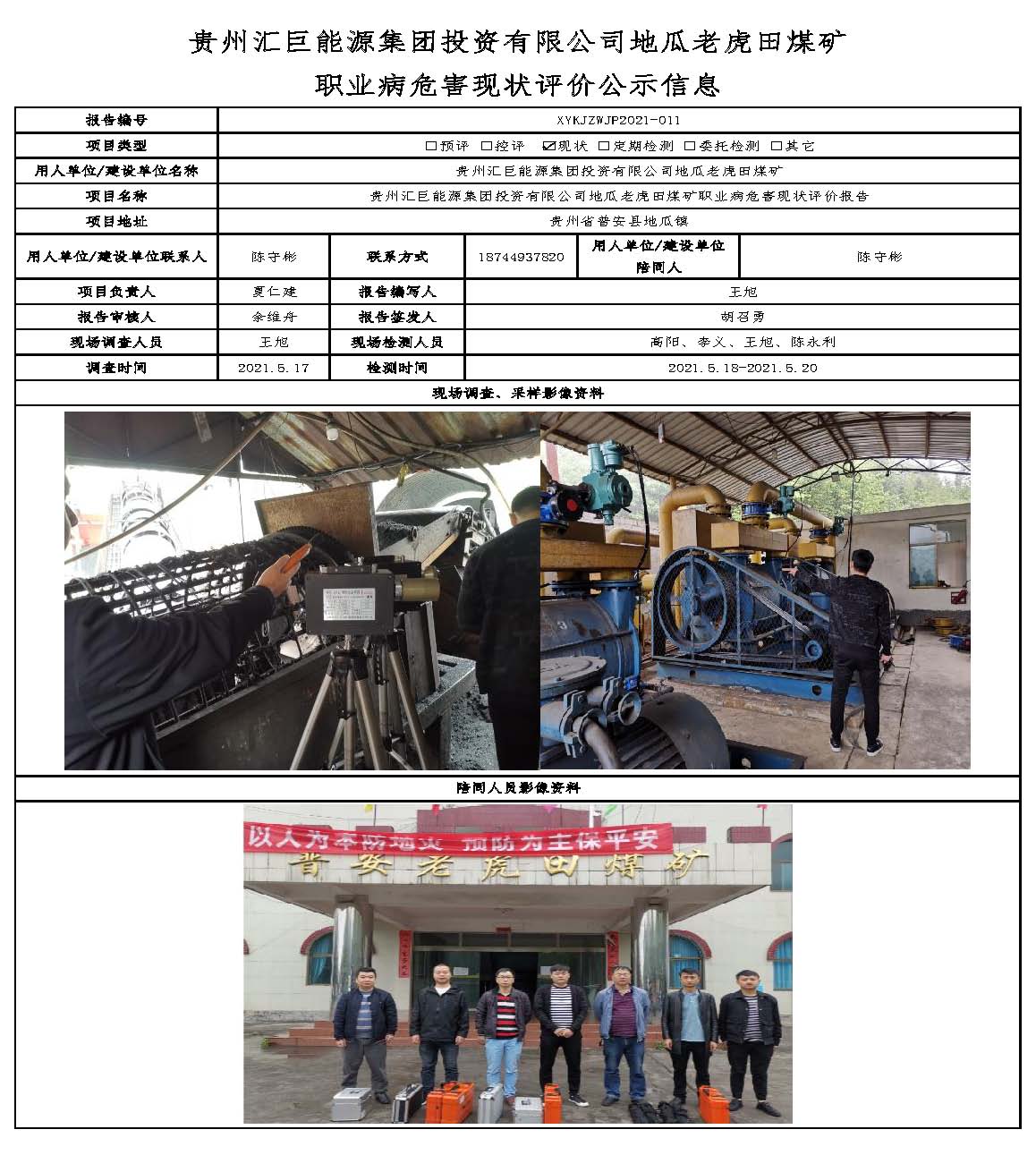 貴州匯巨能源集團投資有限公司地瓜老虎田煤礦 職業(yè)病危害現狀評價公示信息