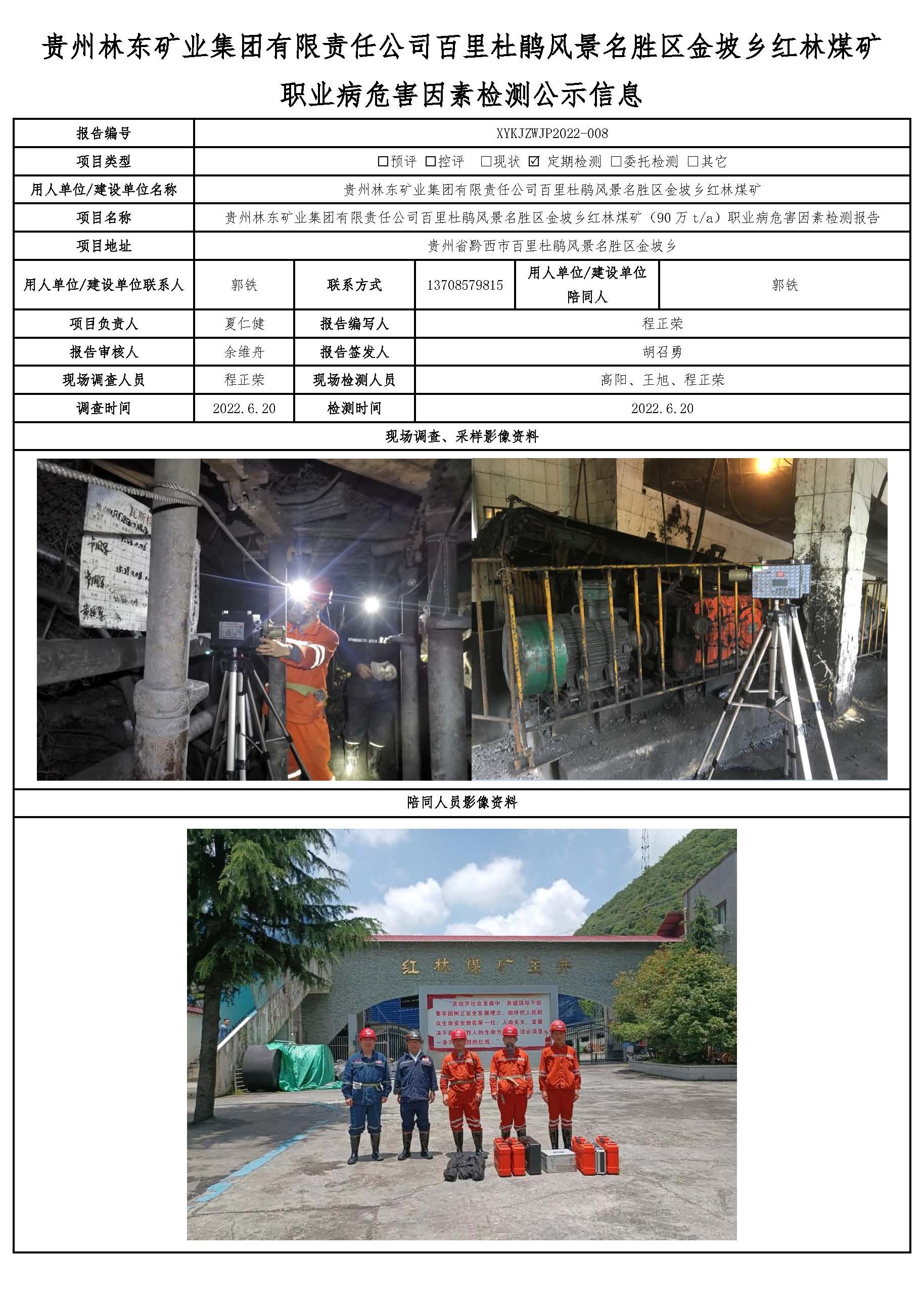 貴州林東礦業(yè)集團有限責任公司百里杜鵑風景名勝區(qū)金坡鄉(xiāng)紅林煤礦職業(yè)病危害因素檢測公示信息