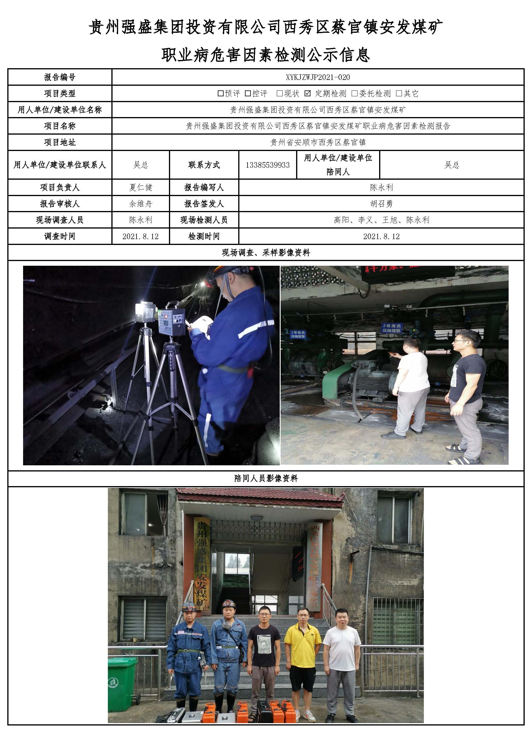 貴州強(qiáng)盛集團(tuán)投資有限公司西秀區(qū)蔡官鎮(zhèn)安發(fā)煤礦 職業(yè)病危害因素檢測(cè)公示信息