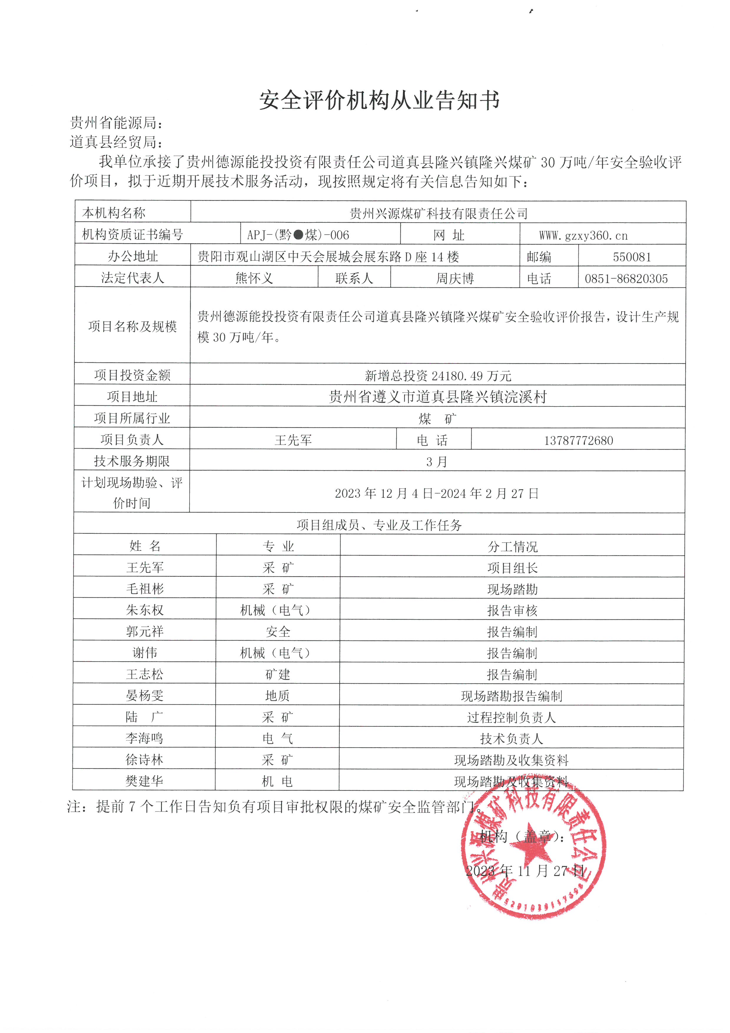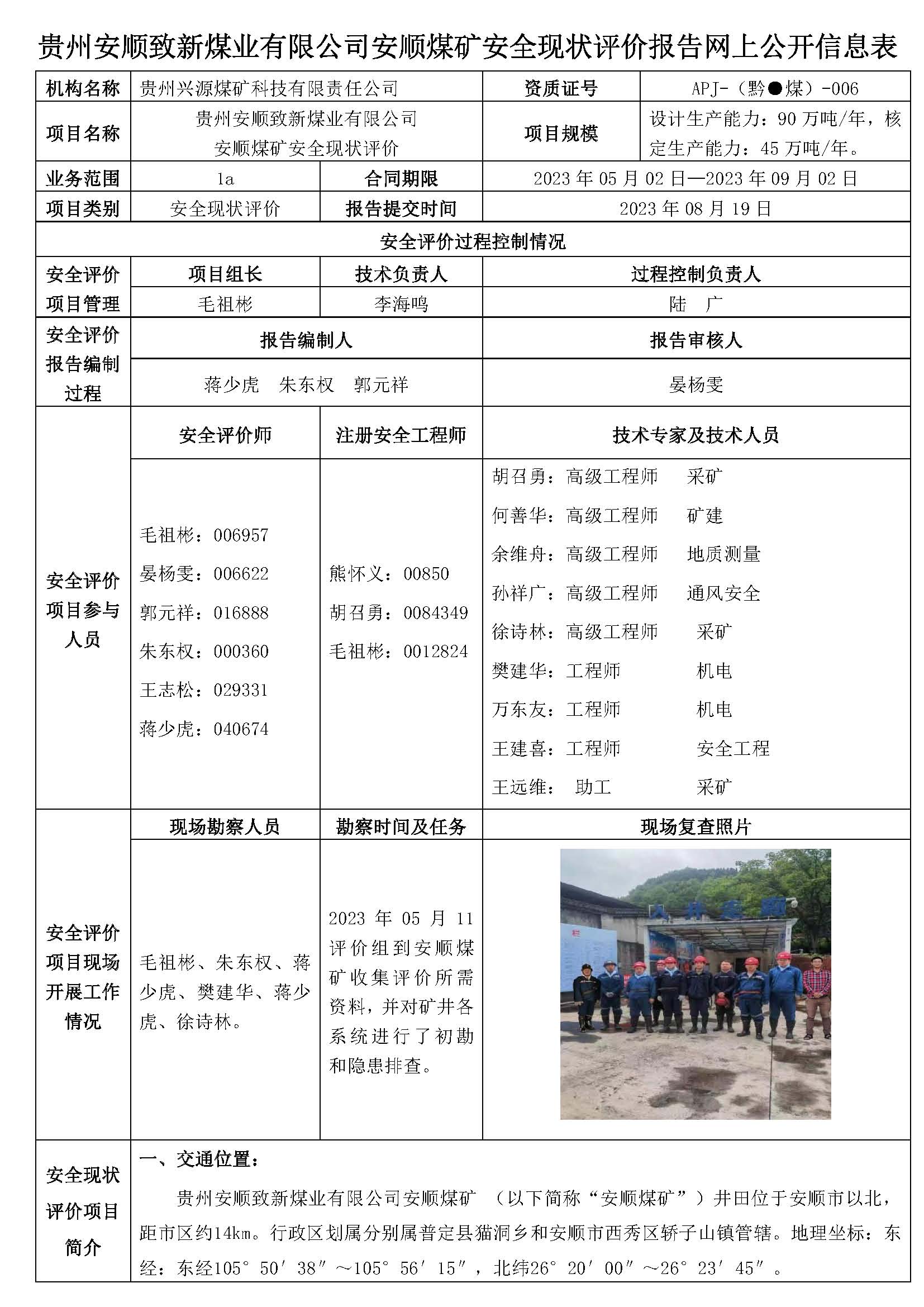 貴州東銀同誠能源有限公司黔西縣谷里鎮(zhèn)石橋煤礦安全現(xiàn)狀評價網(wǎng)上公開信息表